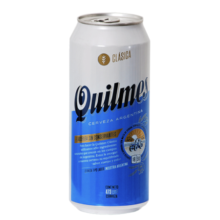 Cerveza Rubia, marca Quilmes. Lata por 473 cc.